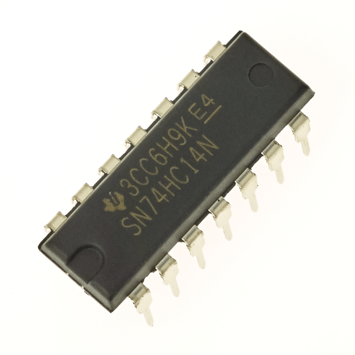 74HC14 is a Hex Schmitt Trigger Inverter IC from the 74HC (High-Speed CMOS) logic family.