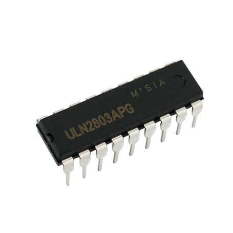 ULN2803A is a high-voltage, high-current Darlington transistor array containing eight NPN Darlington pairs, commonly used to interface low-power logic (like 5V TTL/CMOS microcontrollers) with high-power loads. Each pair handles up to 500mA and 50V, featuring internal clamp diodes for inductive loads like relays, motors, and lamps.