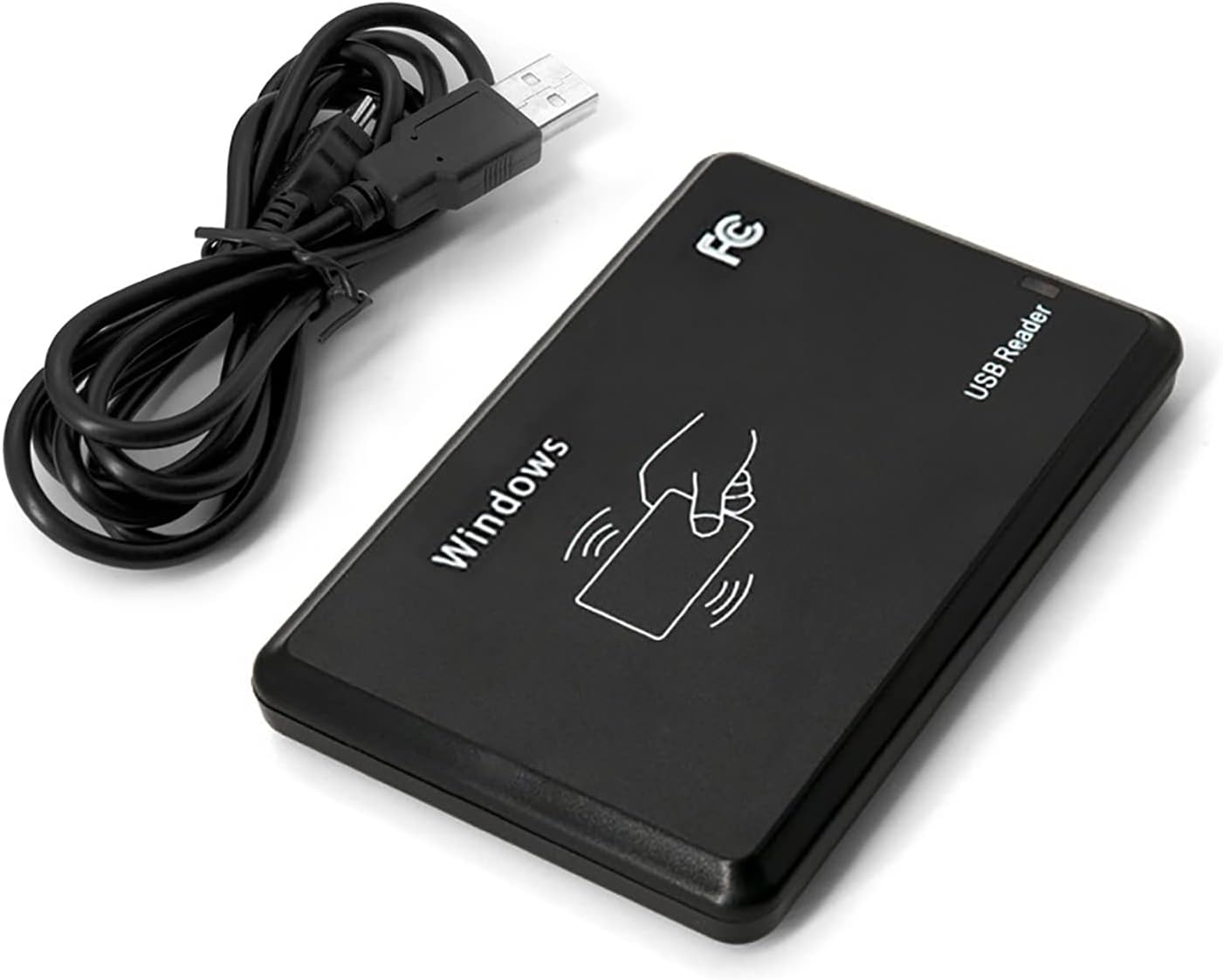 This item is an RFID 13.56MHz IC reader, reading distance up to 8cm, which is widely used for RFID radio frequency identification system and projects, such as automated parking management, personal identification, and production access control. This RFID card reader can read RFID card serial number and output to your computer according to the specified format, then management software derives many more functions.