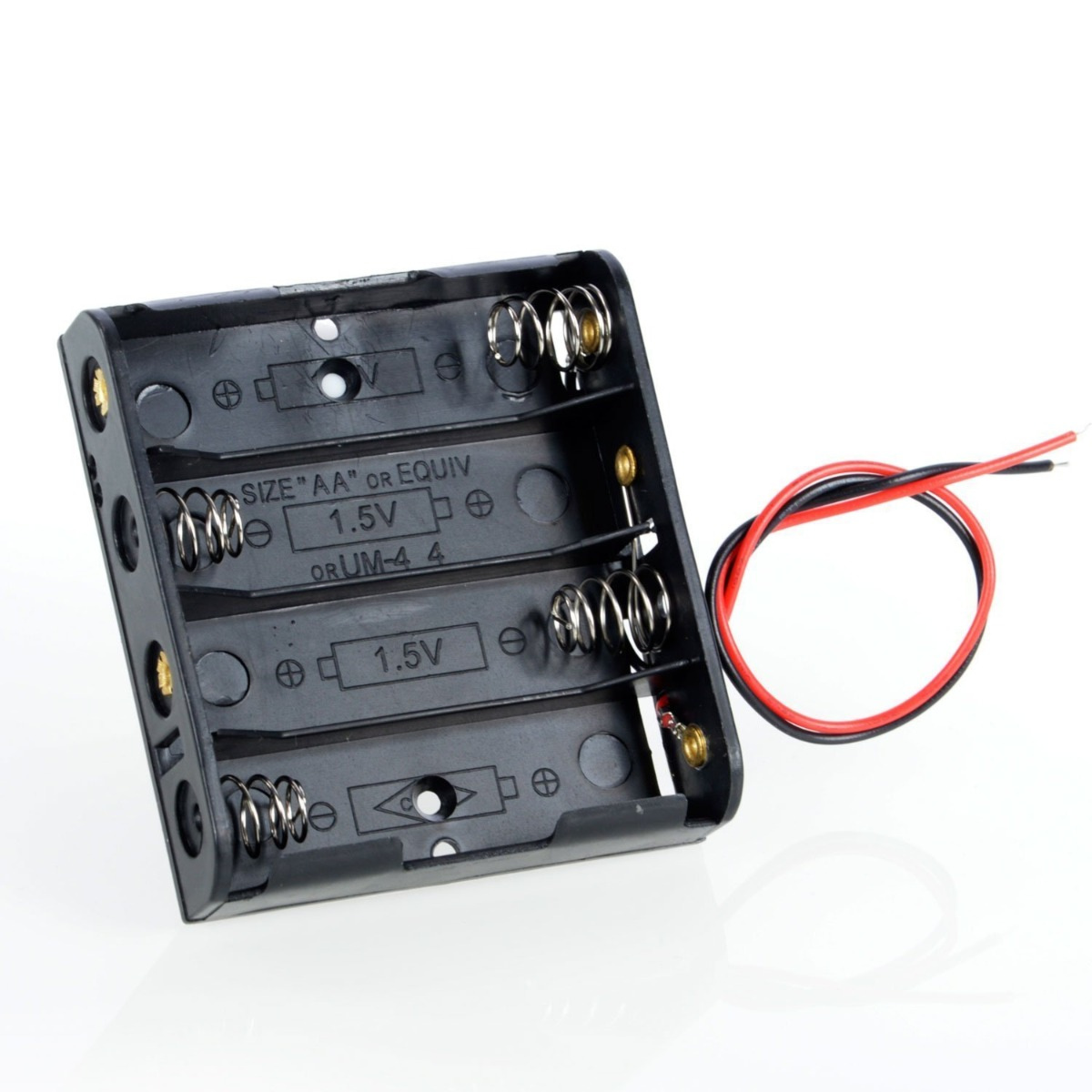 4xAA battery box (or 4xAA battery holder) is a container or holder designed to securely hold four AA batteries and connect them together to provide a usable power source for electronic devices or DIY projects.